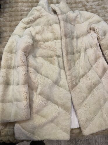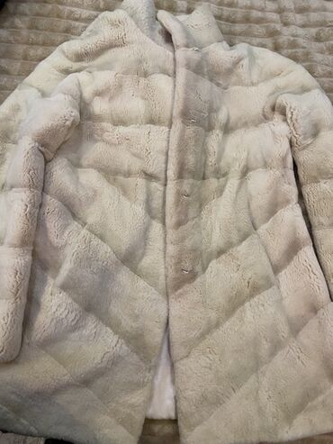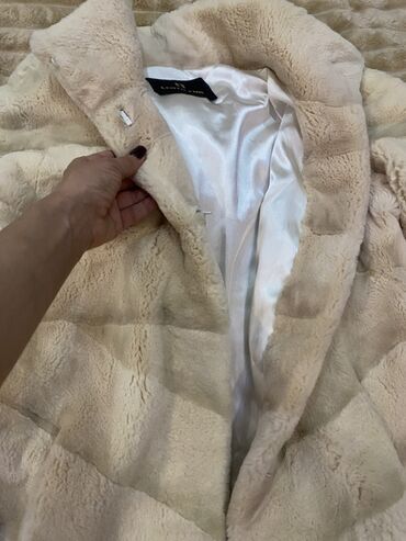 Qadın üçün zərif süni kürk palto sadəcə iki dəfə geyilib 150 m alınıb 50 m satılır real müştəriyə endirim olunacağ - Rəng: açıq krem/bej tonları - Dizayn: üfüqi panellərlə tikili, dizə qədər uzunl...