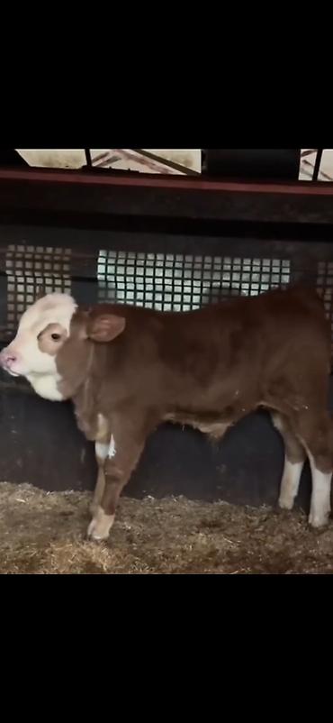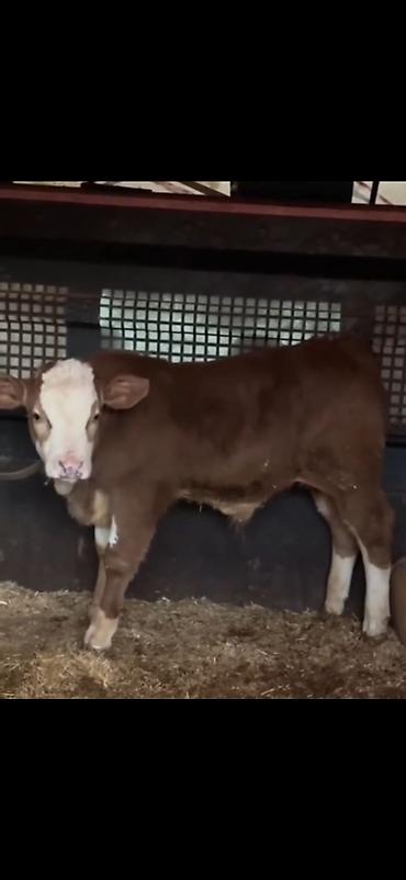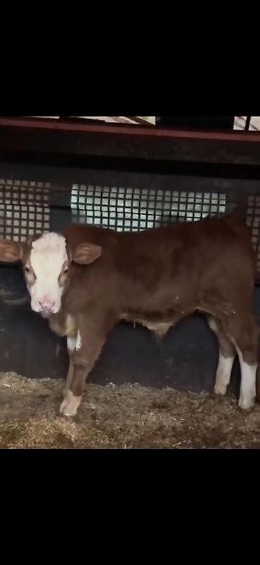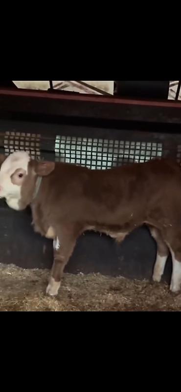 Satış üçün: quzuyaqın yaşda, qırmızı-qonur gövdəli, ağ alın və burunlu danacıq.