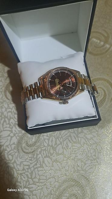 - Siferblat: qəhvəyi-bürünc gradient, indeksli işarələr və incə saniyə göstəricisi
