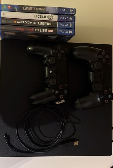 PS4 slim 1 tb 9.00 ✅PS4 slim 9.00 praşifka 1 tb yaddash( usb, disk lazim deyil. 5 saniyeye qoshulur) ✅2 eded original dualshock ✅Pitaniye,usb,hdmi kabeller ✅16 en meshur oyun+ elave yazdirmaq olar...