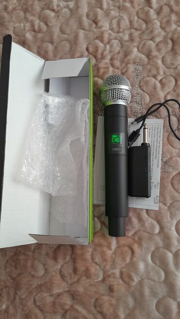 - Mikrofon gövdəsində açıb-söndürmə düyməsi və yaşıl LED/LCD göstərici (kanal/güc səviyyəsi)