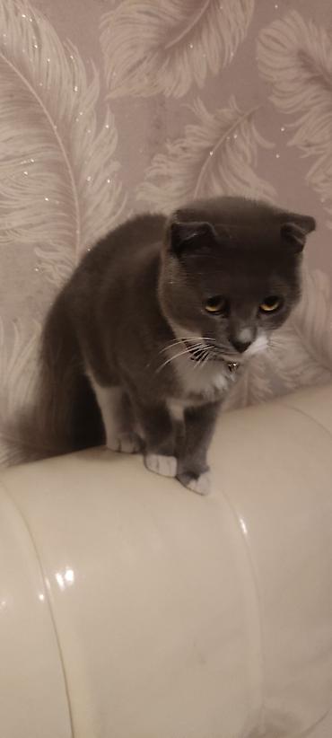 İlan: Şotland qıvrımqulaq balası (Scottish Fold) - Rəng: bərk boz (blue/boz tünd). - Qulaqlar: qıvrım, başa yaxın. - Gözlər: iri, parlaq, yuvarlaq ifadəli. - Xəz: çox yumşaq, sıx və qısa; tüklənmə...