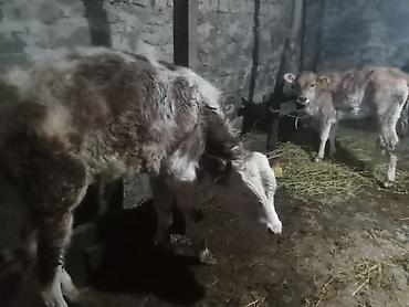 Südlük inək və dana - Qara-ağ rəngli, iri sağım məməli südlük inək - Yanında eyni rənglərdə balası (dana) var - Geniş və dolu süd vəzisi, dörd məmə – əl və aparatla sağım üçün münasib - Sağlam bəd...