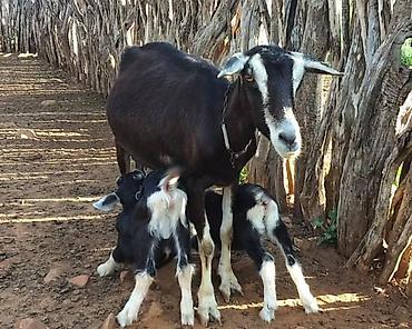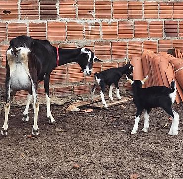 Məhsul: Ana keçi balası ilə Təsvir: - Şəkillərdə ana keçi və balası (oğlaq) göstərilir. - Rəngi: ana keçi qəhvəyi, bədəninin yan tərəfində ağ ləkə; bala qara rəngdədir. - Sağım dövründədir, balası...