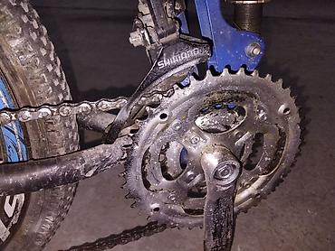 - Sürətlər: Üçlü ön ulduz bloklu ötürmə sistemi; ön dəyişdirici üzərində “Shimano” işarəsi; arxada çox dişli kaset.