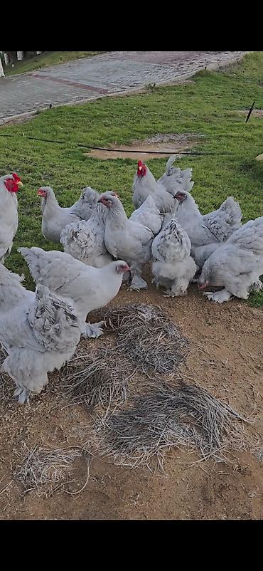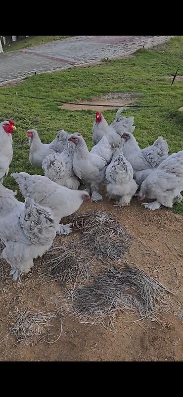 Brahma cinsli toyuqlar və xoruzlar - Cins: Brahma (ayaqları lələkli, iri gövdəli, sakit xasiyyətli) - Rənglər: qara-qızılı (partridge), gümüşü-ağ və qara-ağ variasiyaları - Xüsusiyyətlər: - Ayaq...100 AZN