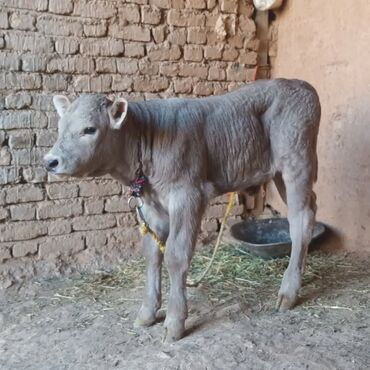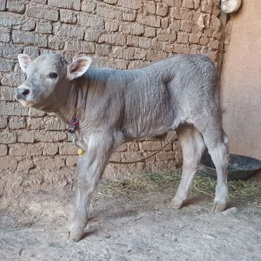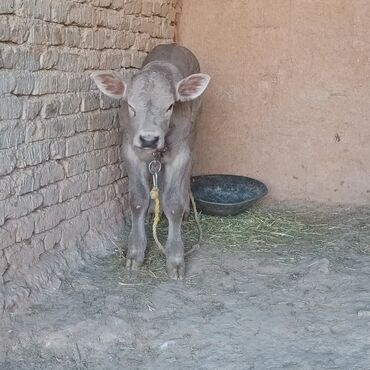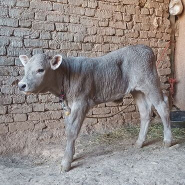 Satılır: dana (buzağı) - Növ: iribuynuzlu heyvan, açıq qəhvəyi rəngli - Cins: yerli tip (şəkillərə əsasən qısa tüklü, yığcam bədən quruluşlu) - Yaş: təxminən bir neçə həftəlik - Qulaqlar geniş, pe...