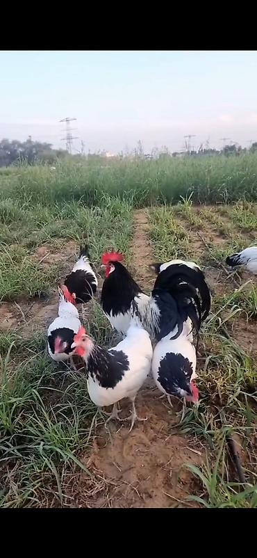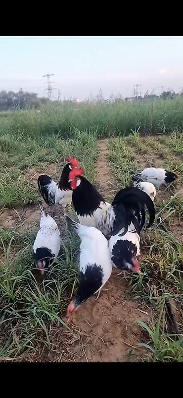 Qeyd: Şəkillərdə göstərilən real sürüdür; qara quyruqlu xoruzlar və ağ-qara yumurtacı toyuqlar birlikdədir.