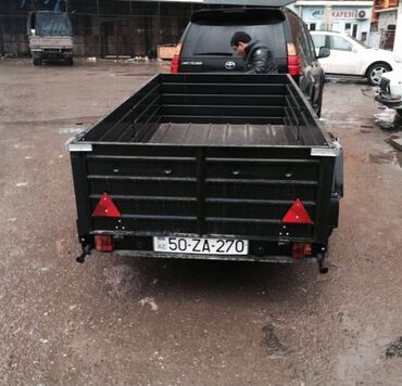Yük daşıma üçün qoşqu (treyler) Texpasportu var - Geniş ölçülü açıq platforma – taxta döşəməli, möhkəm galvanizli metal karkas - Ön hissədə qoşulma üçün standart çəki çəngəli və zəncir - Arxa hiss...