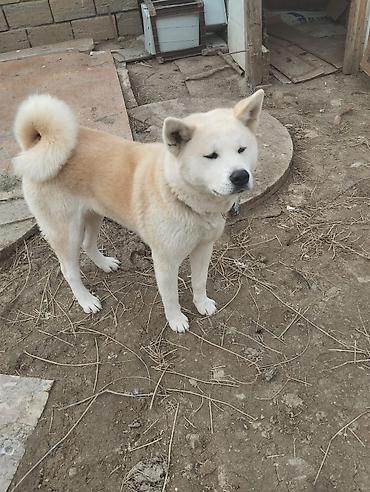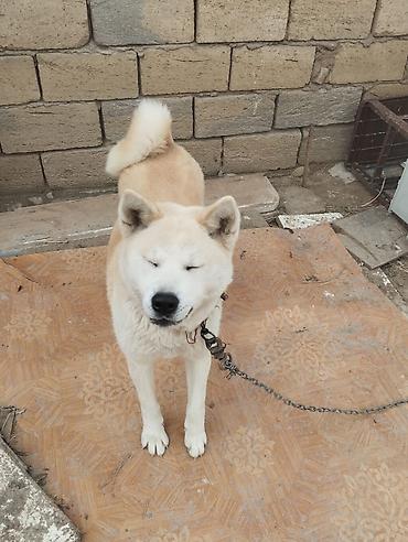 Akita Inu tipli iri ölçülü it 1 yaş 6 aylığdı - Rəng: açıq krem/bej, ağ sinə və pəncələr - Qulaqlar: dik, üçbucaq formalı - Quyruq: qalın və tüklü, üstə doğru bükülür - Kəmər: geniş, möhkəm boğazl...