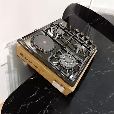 - 4 gözlü səth: 3 qaz ocağı + 1 elektrikli “hotplate” (dairəvi).