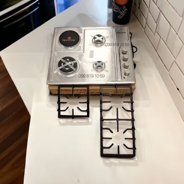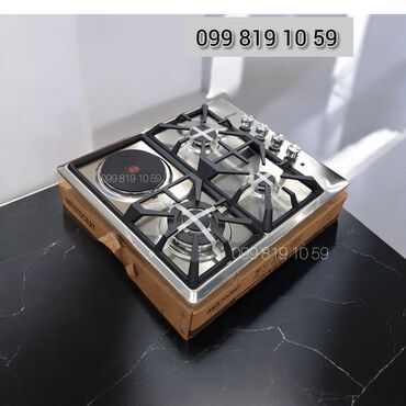 - Tip: Stolüstü/anki̇şatdırılan qaz plitəsi, kombi – 3 qaz ocağı + 1 elektrik göz (sol tərəfdə dairəvi elektrik qızdırıcısı)