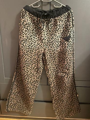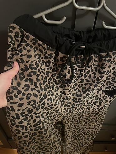 Leopard naxışlı geniş kəsimli şalvar - Dizayn: qum rəngli fon