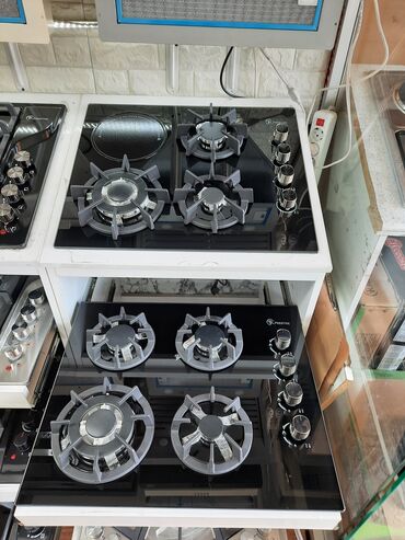 Prestige qaz plitəsi – şüşə keramik səthli, 4 gözlü kombinə edilmiş model.