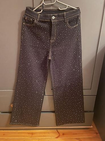 Stradivarius qadın cins şalvar – razmer 36 - Rəng: tünd lacivərt (dark blue) - Kəsim: geniş ətəkli/flare siluet - Bel: klassik bel xətti, düymə və fermuar bağlanışı - Detallar: kontrast rəngdə tik...