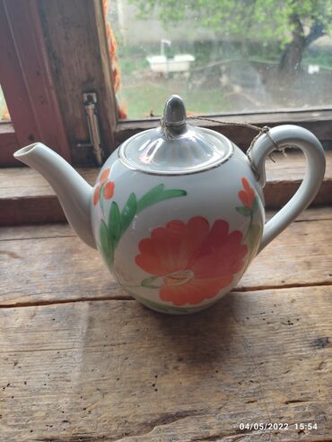 Orijinal farfor çaydan. SSRİ dövründə hazırlanıb. Əl ilə çəkilmiş mavi və yaşıl tonlarda naxışlar, qızılı bəzəklərlə. 1960–1970-ci illərin klassik sovet dizaynı. Vəziyyəti əladır — çat və ya sınıq ...