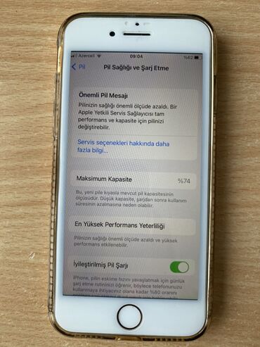 - Batareya: “Pil Sağlığı” bölməsində maksimum tutum 74% göstərilir; “İyileştirilmiş Pil Şarjı” aktivdir