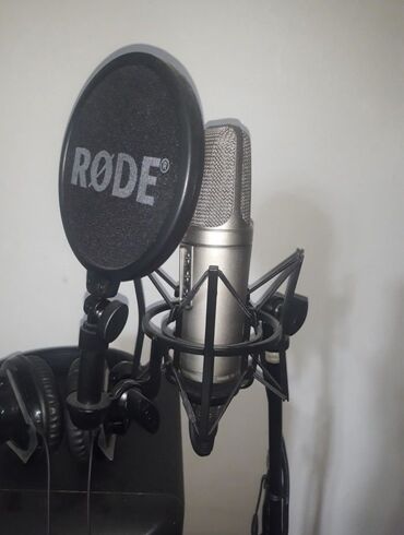 - RØDE mikrofon – böyük diafraqmalı kondensator tipli. SM6 shock mount və pop‑filtr ilə. Pop‑filtr səslərdəki “p” və “b” partlayışlarını azaldır, shock mount isə titrəmələri kəsir.