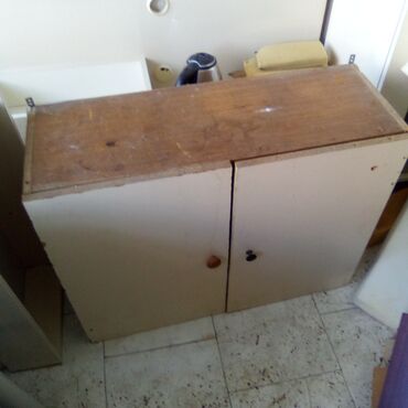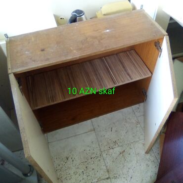 - Kiçik şkaf: İki qapılı, içəridə bir rəfli quruluş. Üstü düz səthdir, yerləşdirmə və saxlama üçün uyğundur. Şəkildə qeyd olunan qiymət: 10 AZN.