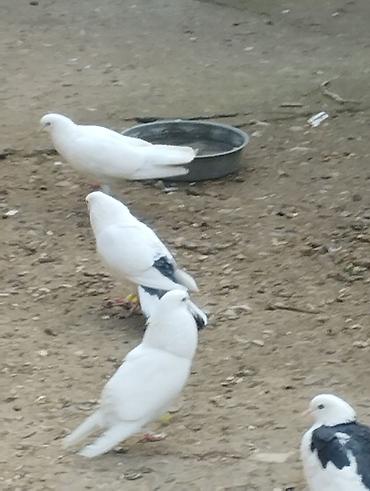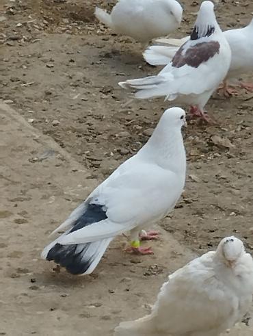 - Növ: dekorativ/yaşıd uçuş göyərçinləri (ağ əsas rəng, bəzi fərdlərdə kürəkdə və quyruqda tünd ləkələr)