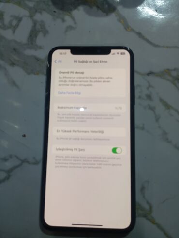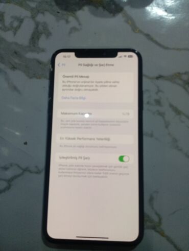 - Batareya bölməsi şəklində “Pi Sağlığı və Şarj Etmə” menyusu görünür; “Maksimum Kapasite” 87% olaraq göstərilir