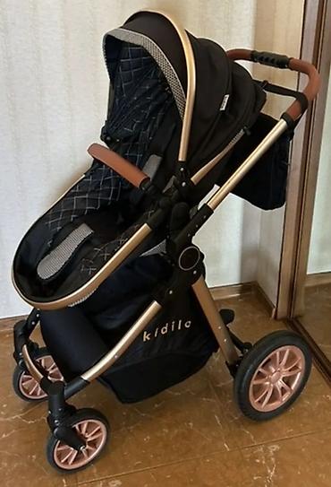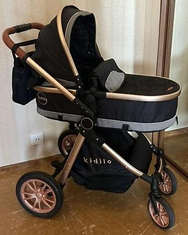 Uşaq arabası – Kidilo markası - Rəng: açıq bej/boz tonları - Çərçivə: möhkəm alüminium konstruksiya, tənzimlənən tutacaq - Oturacaq bloku: geniş və dərin, yumşaq yastıqlı, təhlükəsizlik üçün ön qo...