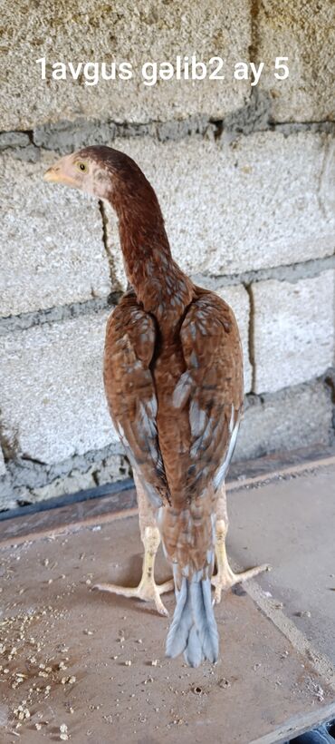 Məhsul: Uzunboylu xoruz (yerli döyüş/oyun tipli görünüş) Təsvir: - Uzun və güclü ayaqlar, iri sarı pəncələr - Uzun boyun, qırmızı daraq və dimdikli baş - Lələkləri qarışıq rəngdə: qırmızı-qəhvəyi,...