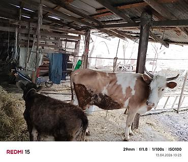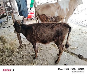 Dişi bala ilə. 12ltr süt verir. Qiymətdə razılaşmaq olar - Şəkildəki heyvan süd yönümlü inəkdir, yanında yeni doğulmuş buzov görünür. - Inəyin süd vəzisi doludur, sağım üçün hazırdır. - Qidalanma ...
