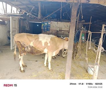 Simental tipli inək balası ilə birlikdə satılır. Altında 5-ci bala, danası dişidir. Gündə iki sağımda (səhər-axşam) ümumilikdə 6 litr süd verir. İri cüssəli, buynuzlu, açıq-qəhvəyi/ağ rəng qarışıqlı. Dana sağlam, qara-qəhvəyi rəngdədir, aktiv və yemə gedəndir. Ailə təsərrüfatı üçün uyğun süd verimi və damazlıq potensialı var.