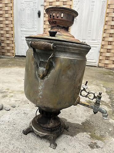 qədimi samovar əlla vəziyyətdə 40 litir - Yanacaq növü: kömür/odunla işləyən (üst hissədə baca çıxışı) - Geniş su qazanı – çoxsaylı fincan üçün uyğundur - Korpus: parlaq metal, istiliyi yaxşı saxl...