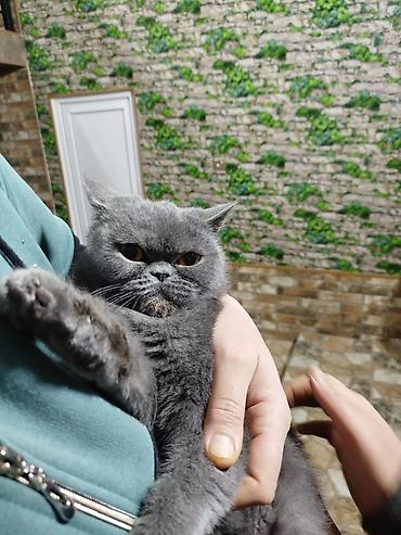 Boz rəngli, qısa tüklü ev pişiyi. Şirin və mehriban xarakterli, sakit