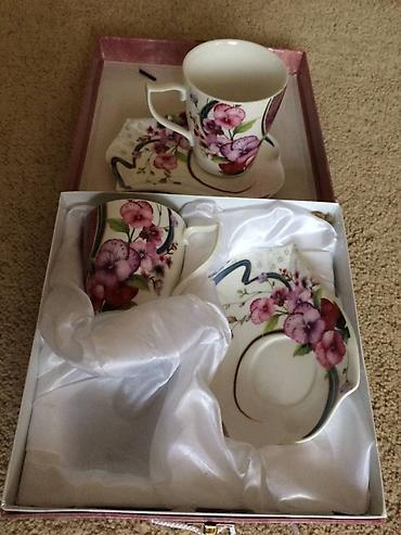 Mətbəx üçün qəndqabı və fincanlar. Bəzilərini ümumiyyətlə işlətməmişəm. Bəzi dəstlərdə 5 bəzilərində 6 fincan var. Istifadə etmədiyim üçün satıram.