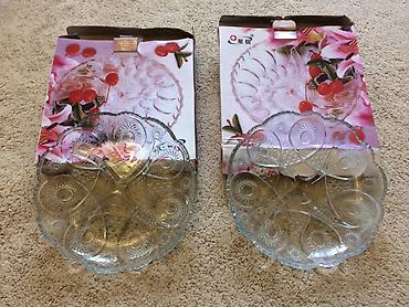 İki meyvə qabı və güldan .Güldan ayrı da satılır .Qablar yenidir ,yalnız meyvə qablarından birinin ıçəri hissəsində cüzi bir çox kiçik defekt var .