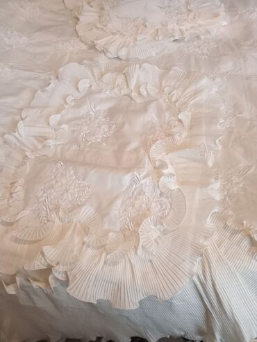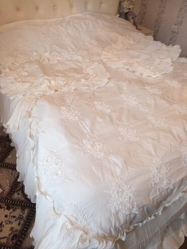 Yataq üçünФранцузское покрывало на двухспальную кровать,всего 10 дней использовали и уехали из страны.Почти новое,кремовый цвет,ажурная вышивка.