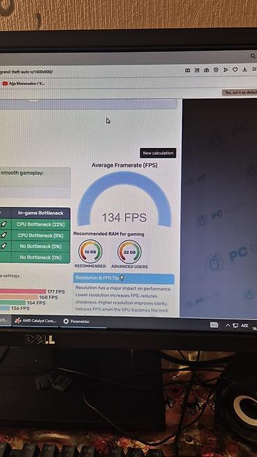 - Prosessor və qrafika: Populyar oyunlarda 1080p qrafikdə yüksək kadr sürəti verən konfiqurasiya. Ekran görüntüsündə orta 134 FPS göstəricisi (GTA V nümunəsi).