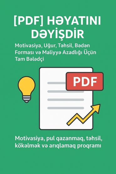 Bu PDF insanın həyatında dəyişiklik yaratmaq üçün lazım olan 5 əsas sahəni — motivasiya, pul qazanmaq, təhsil, kökəlmək və arıqlamaq mövzularını — bir yerdə toplamaqla praktik və real nəticə verən bələdçi təqdim edir. Hər şeyin başlanğıc nöqtəsi isə sadədir: insanın özü və verdiyi qərarlar.