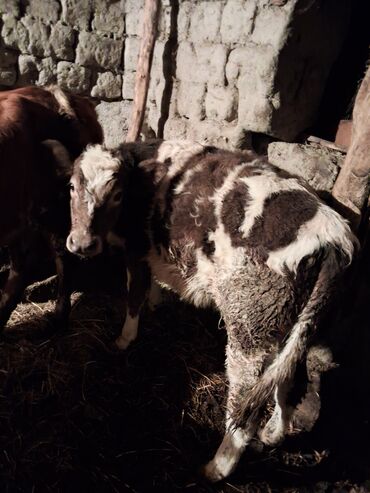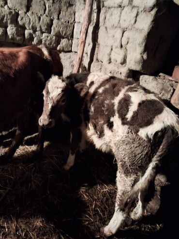 Satılır: inək 3aylığ erkək balası var - Cins: simental (şəkildə göründüyü kimi, qəhvəyi rəng, alnı açıq rəngli) - Buynuzlu, sakit xasiyyətli, otlaqda rahat güdülür - Sağım üçün münasib, süd və bu...