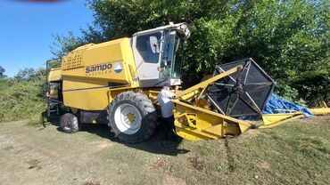 Sampo Rosenlew 2035 taxıl biçin kombayını - Model: Sampo Rosenlew 2035 - Biçin başlığı: CH 4200 (təxminən 4,2 m işçi eni) - Kabin: geniş görünüşlü operator kabini, üst işıq siqnalı - Təkərlər: iri...