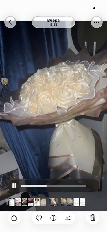 - Zərif ipək effekti olan krem tonlarında güllərdən ibarət dekorativ buket