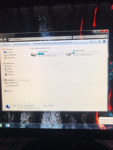 - Saxlama: ümumilikdə təxminən 2x240 GB HDD (C: 238 GB, F: 232 GB).