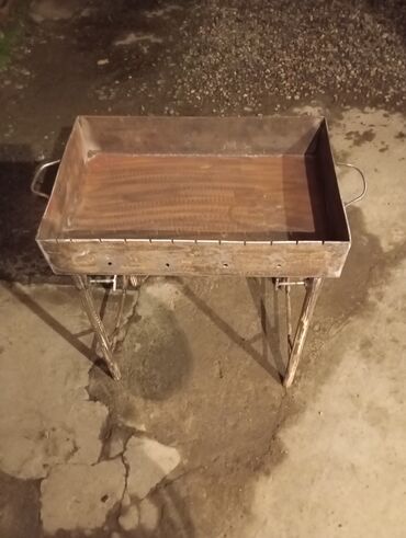 Metall manqal/qril - Material: qalın metal korpus, qaynaqla yığılmış - Uzunluqu 71 sm eni 41 sm Hundurluyu 83 sm. Qalinliqi 6 liq listle yiqilib cox aqir mohkem manqaldi yenidir istifade olunmayib.