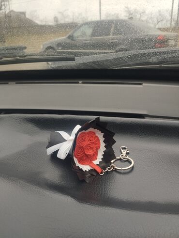 - Material: Sənətkarlıq kağızı/foamiran tipli dekor, atlas lent, metal açarlıq halqası və karabin.