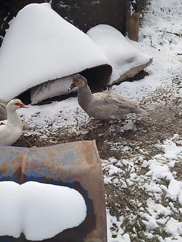 Muscovy (hind) ördəkləri – boz/gümüşü rəng çalarında, baş hissəsində xırda ibik-qarmaqlı çıxıntılar və qırmızı maskalı üz quruluşu. Şəkillərdə həm dişi, həm də erkək fərdlər görünür. Sakit xasiyyətli, soyuğa davamlı, yarı-quru yemlə yaxşı bəslənir, otlaqda özü yem tapmağa meyllidir.