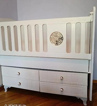Uşaq beşiyi – modullu, funksional dizayn - Material: ağ rəngli MDF/taxta konstruksiya, möhkəm lamel yanlıqlar - Ölçü: geniş yataq sahəsi (körpə üçün), yanlarda yüksəklikli qoruyucu barmaqlıqlar - ...