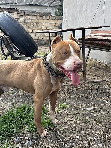 Erkəy pitbul 1 yas 5 aylıq ətraflı məlumat üçün whatsapa yazın..İt – böyük ölçülü, güclü bədən quruluşlu, qəhvəyi rəngdə, sinəsi, pəncələri və burnunda ağ ləkələri olan erkək. Qısa, parlaq tük örtü...