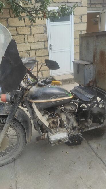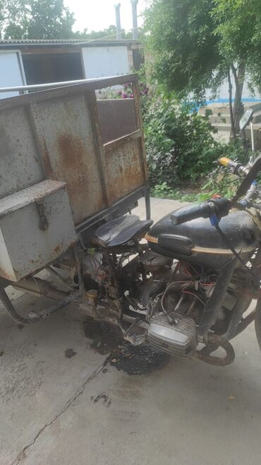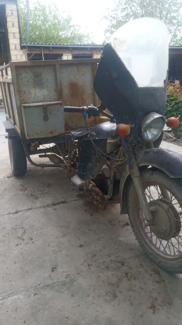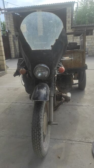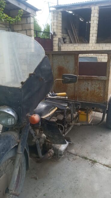 - Motosiklet əsasında hazırlanmış yük daşıma vasitəsi: ön hissə klassik iki silindrli motosiklet, arxa hissə isə iri metal yük platformasıdır.