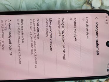 Samsung A15 telefonu satılır. Hər şeyi işləyir. Vəziyyəti əladır (qız işlədib). Original adaptor komplektdədir.