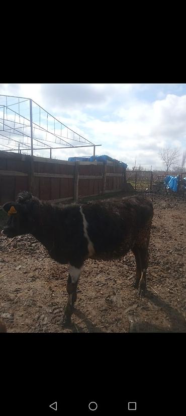 Satlıq buzov - Cins: yerli südlük-ətlik istiqamət - Rəng: qara, alnı və dodağı ağ nişanəli - Yaş qrupu: buzov (dişi/erkək məlumatı şəkilə əsasən dəqiq deyil) - Yeminə öyrədilib, saman və quru otla...