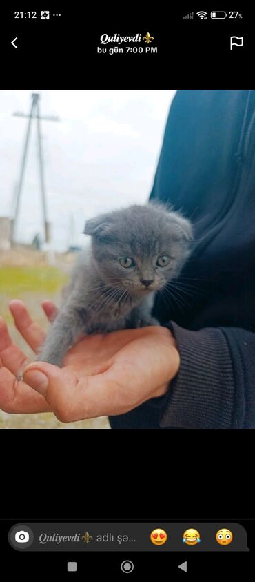 Şotland qıvrım qulaqlı balaca pişik (Scottish Fold) – boz/gümüşü rəng çalarlarında, yumşaq və sıx tüklü. Xüsusiyyətlər: - Ev şəraitində böyüdülmüş, insanla ünsiyyətə meylli və sakit xarakterlidir...