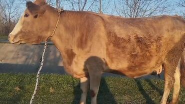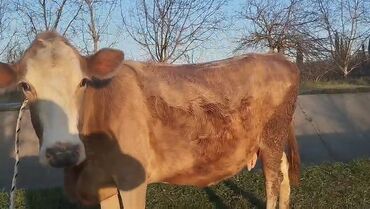 Südlük inək - Rəng: qırmızı-ağ ləkəli 3 ci qarın 8 aylıq boğazdir təmiz səmetaldır təzə doğanda 16 18 litr süt verir yaxşı yaglı sütü var yaxşı yek maldır şekildə görnəkimdi böyük maldır